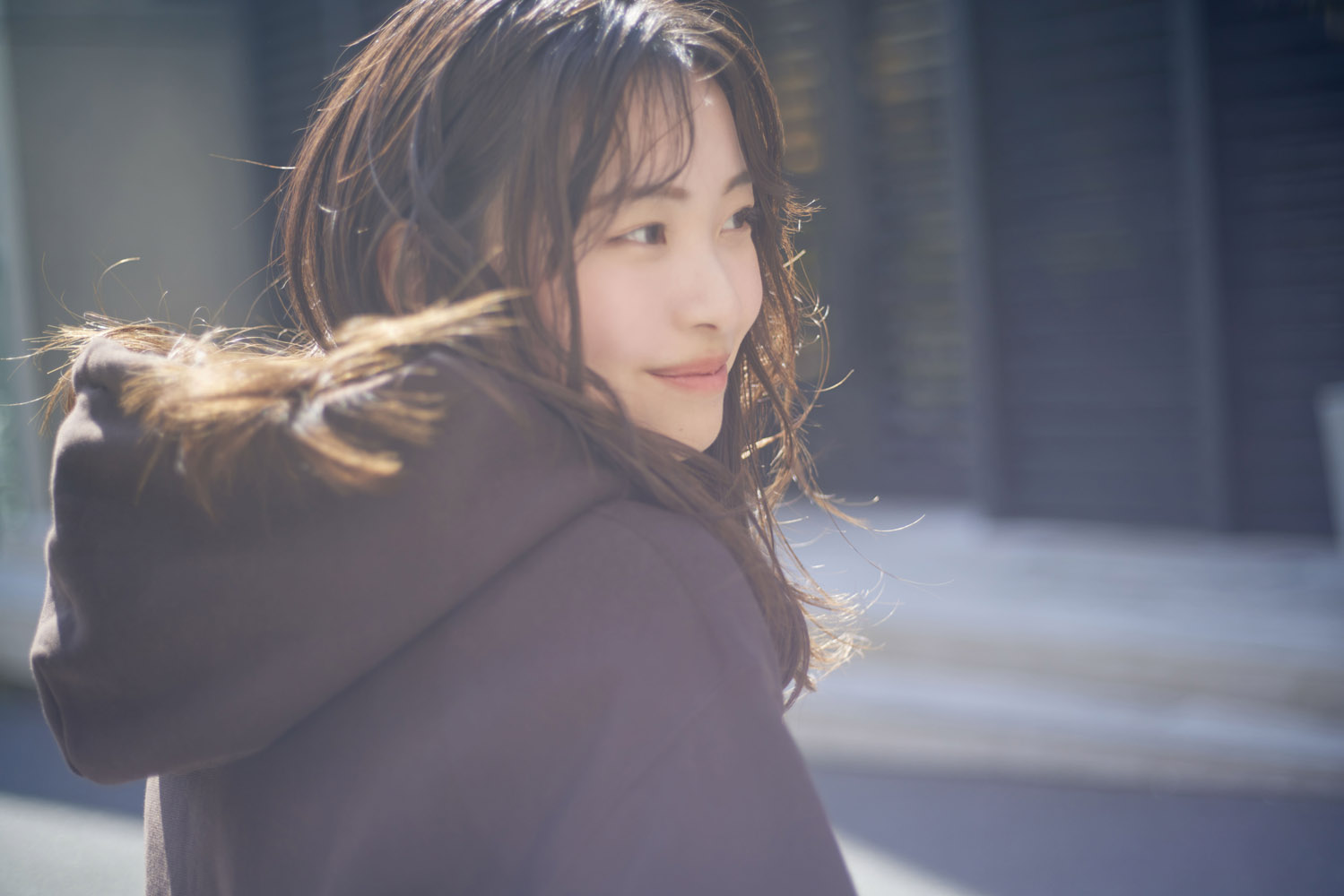 鎖骨下にワンレンでカットし顔まわりにレイヤーが入っています。カラーは柔らかベージュ9トーンです。スタイリングは全体を外ハネにワンカールし、顔まわりのレイヤーはリバースに巻きます。シンプルなスタイリングですが、動きとまとまりの二つを叶えられます。