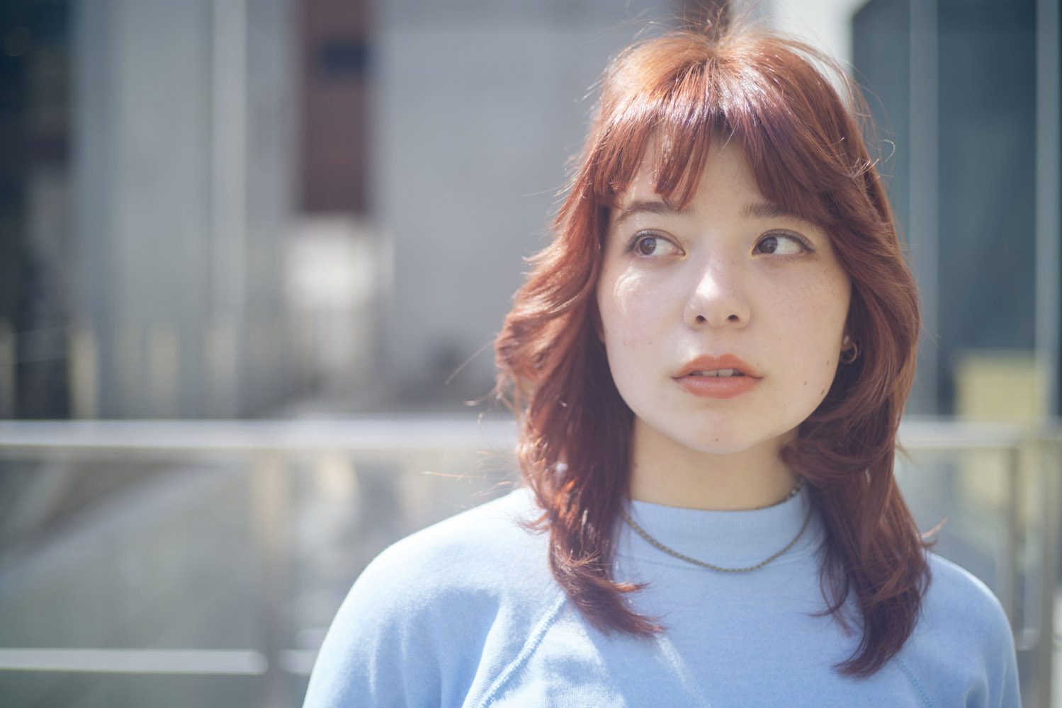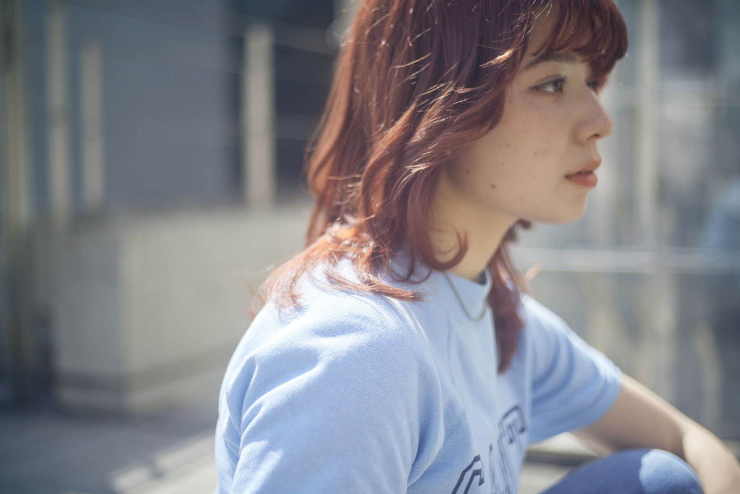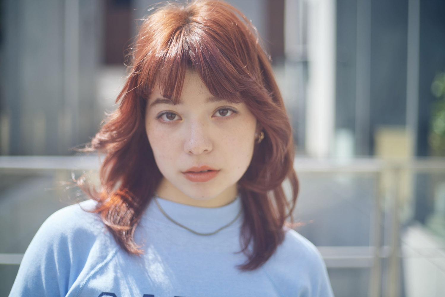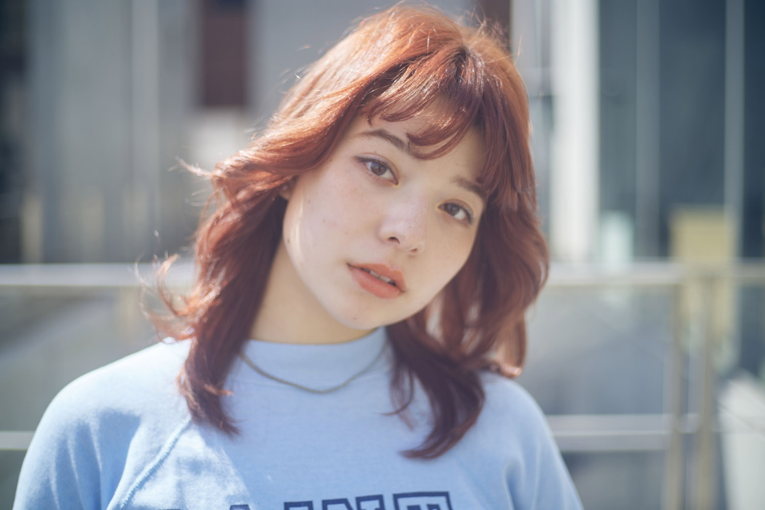 顔周りだけデザインを入れたミディアムスタイル。 内と外どちらに巻いても可愛いので日によって気分が変えられます。 ヘアカラーはビビットオレンジ。 ヘアカラーの退色がオレンジになりやすい方にも一度チャレンジして欲しいカラーです。