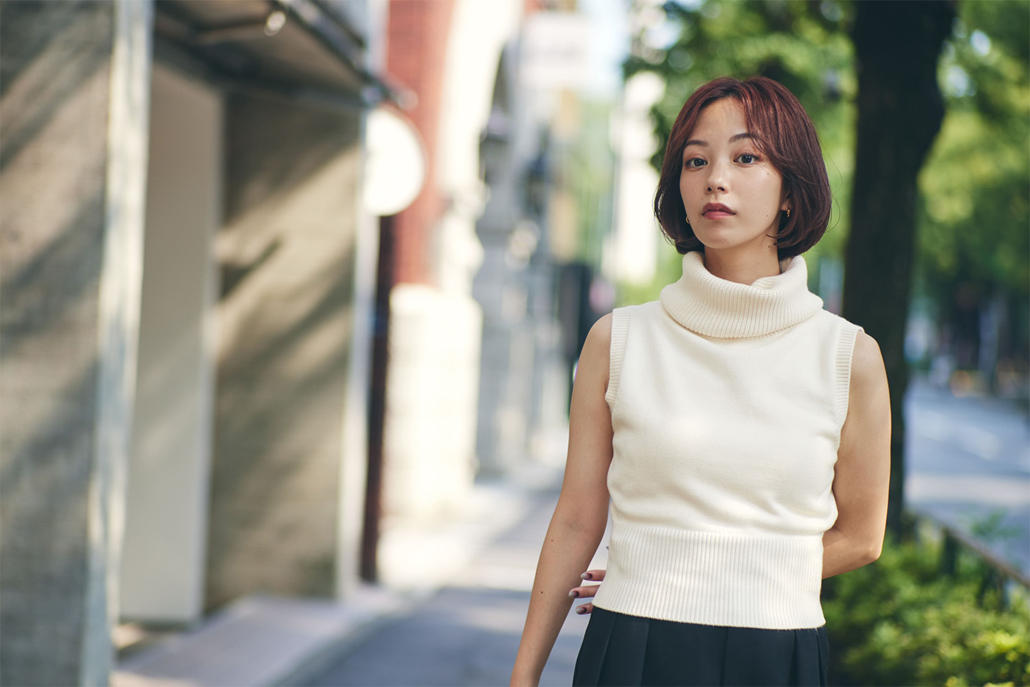 毛先重めの丸みボブ 表面に軽いレイヤーを入れる事でひし形になり女性らしさを出します。