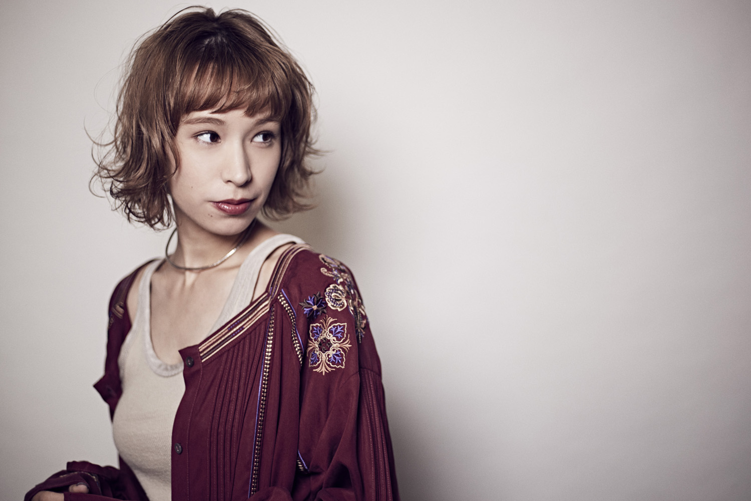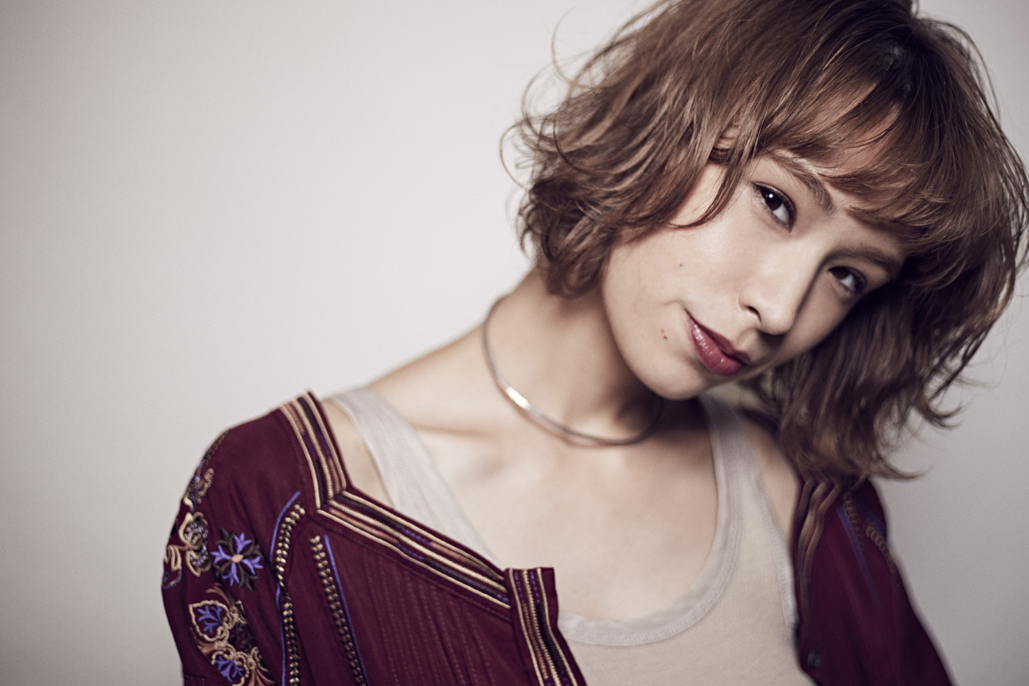 外ハネのパーマを合わせたレイヤーボブスタイル。