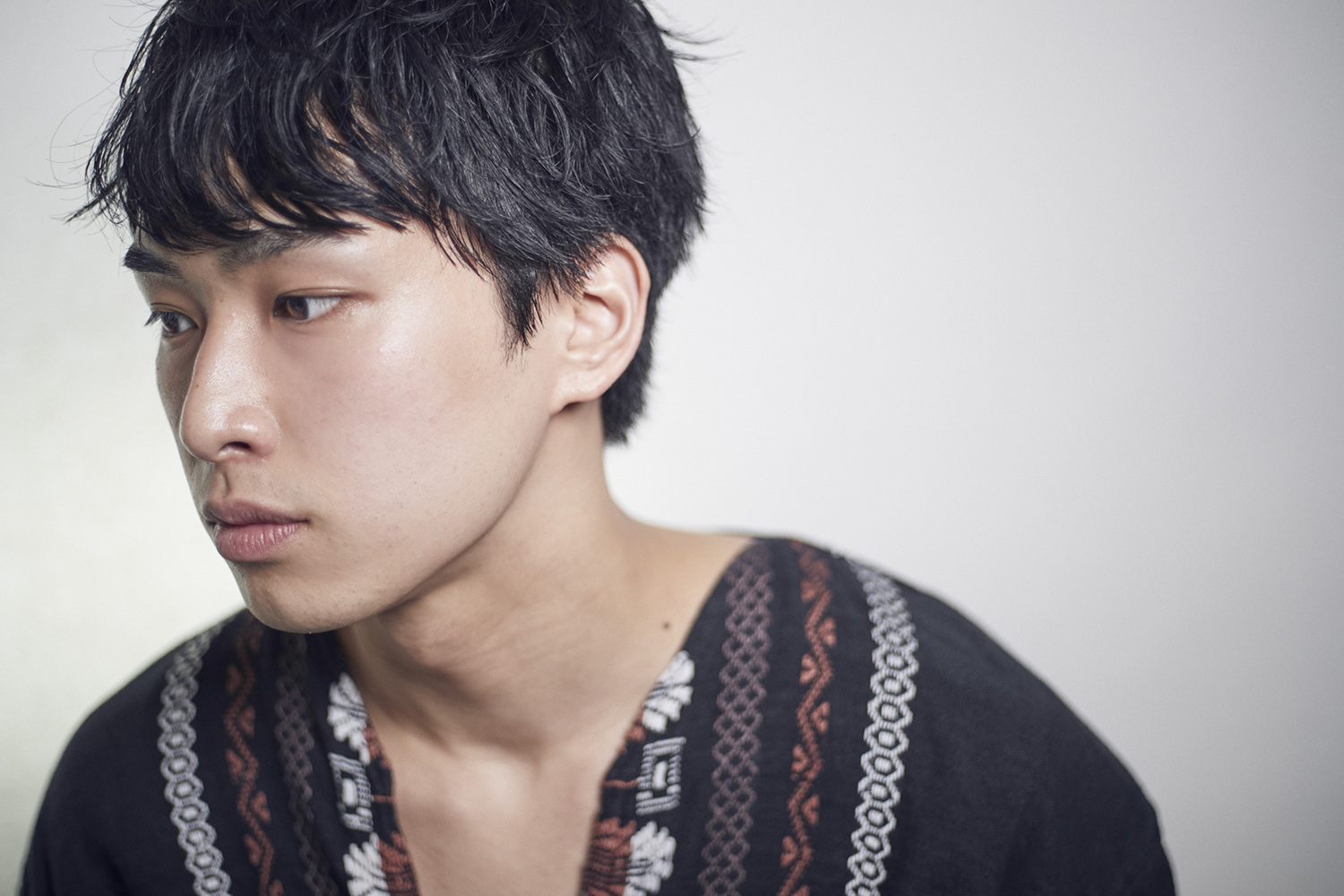 サイドからバックを甘めに刈り上げ、ゆるやかな2セクションにしています。