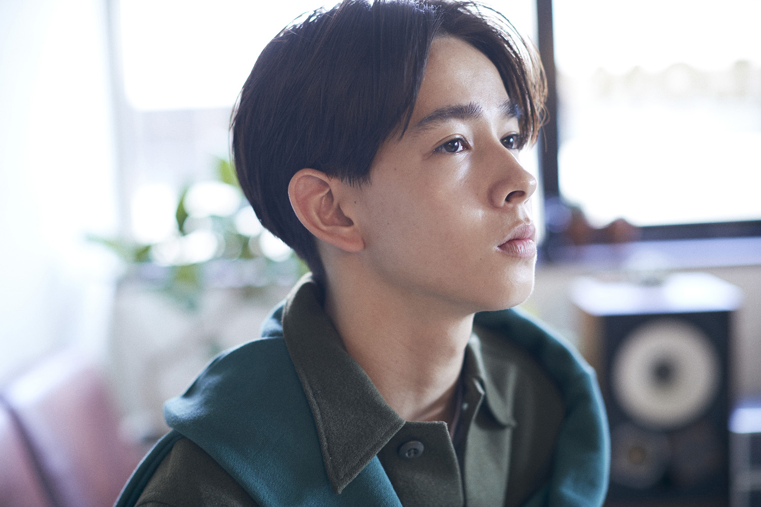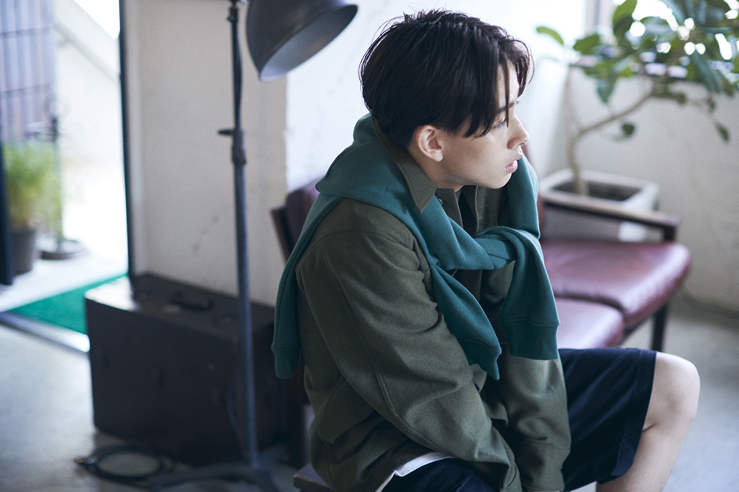 横と後ろの内側をツーブロックに刈り上げ耳上で直線ラインを強調させたストリートタッチのスタイル。 すっきりとした印象を与えながら長さのあるデザイン。 ヘアバームでセミウエットに仕上げています。